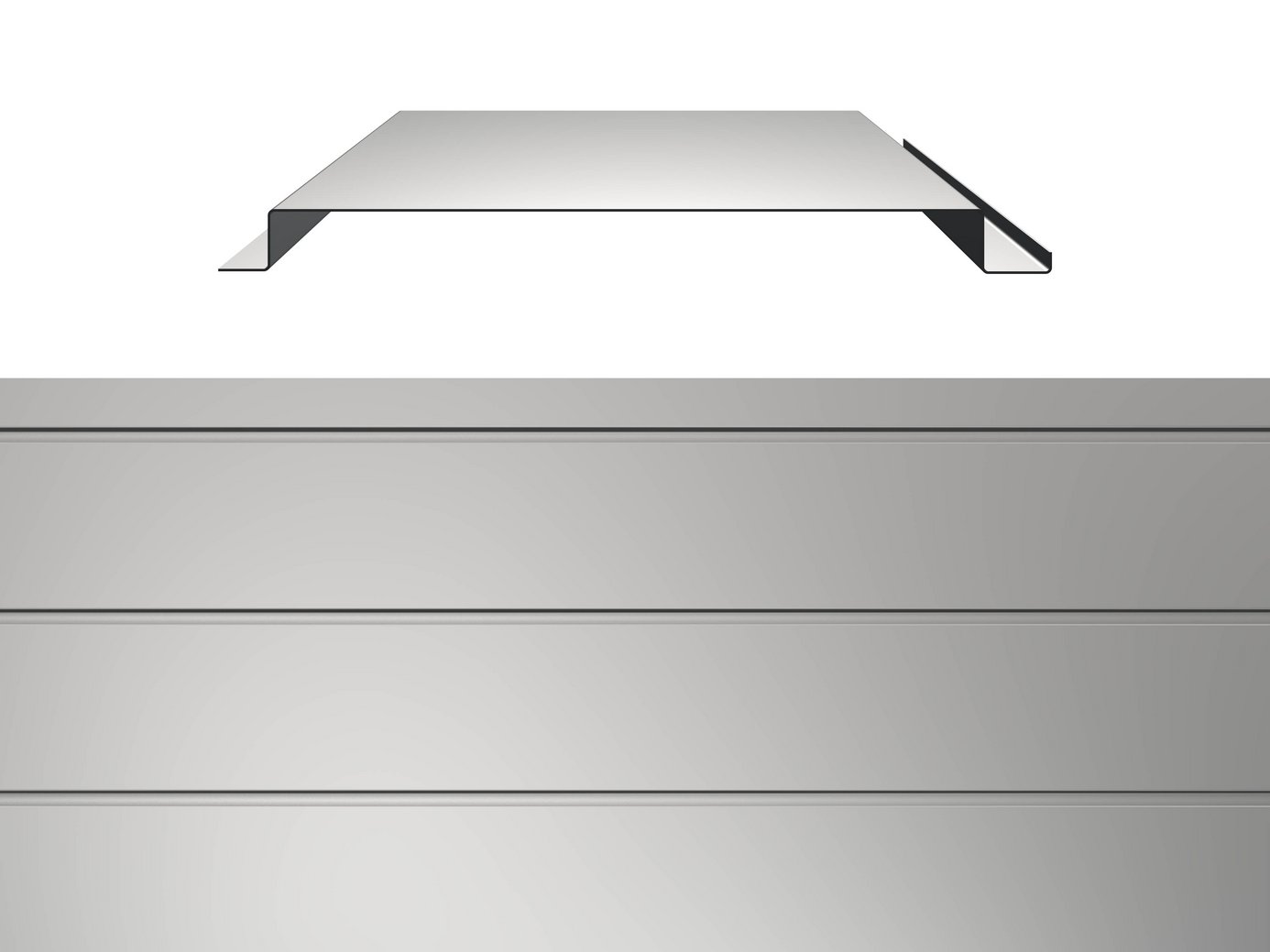 Das Kastenpaneel hat eine gerade Struktur und wird mit Schattenfuge montiert.